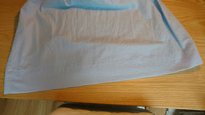 I would've folded more white fabric on the front left edge, but couldn't because then I would've had to fold a lot of blue fabric on that same edge. This would've made the bodice tighter while I felt that it was already rather tight. Eventually, when I tried on the dress with the zipper, I realized that I had been worried for nothing. The bodice has plenty of space.